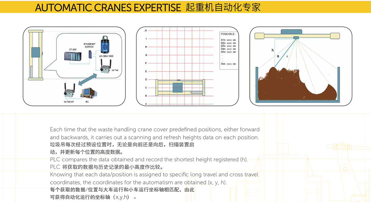 عند بدء التشغيل في الوضع التلقائي، تبدأ الرافعة الجسرية بعملية الكنس وقياس تراكم المواد في الحفرة ثم تجمع المواد من المستوى العلوي لتغذية القواديس.